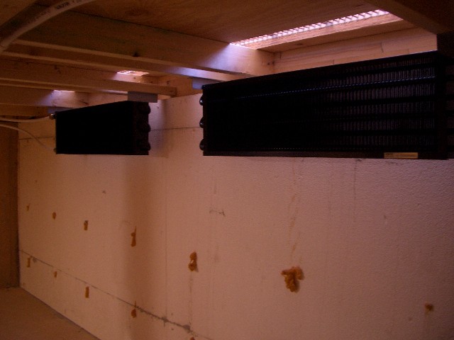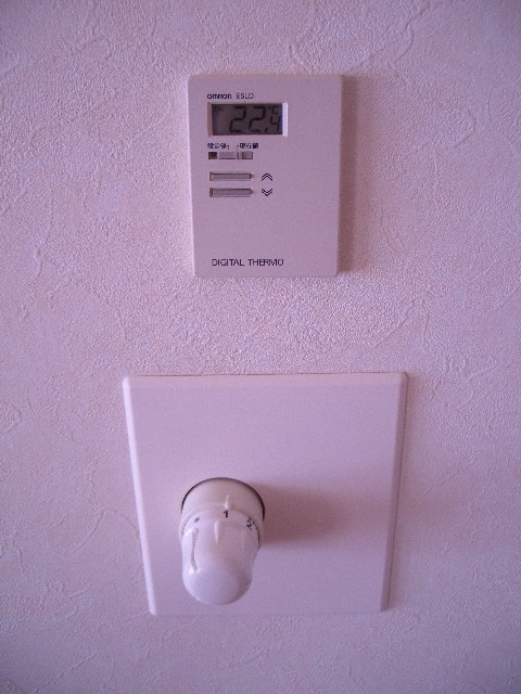 本日は我が家の暖房方式をご紹介します。 ウチの暖房方式は、1階は床下暖房、2階パネルヒーターです。 パネルヒーターは置いといて、まず我が家の床下暖房のしくみを簡単にご説明します。 我が家の1階の暖房ですが、まず外壁に設置された給気口から外気を床下に取り込みます。給気口は東西と北面の三箇所に設置されています。 外壁の給気口部分(東側)です。ここから外気を取り込みます。 床下に取り込まれた冷たい新鮮な空気は、床下に設置された温水放熱器によって暖められ、1階床に開けられたガランから緩やかな対流となって1階居室全体を暖めます。 また床下全体が暖かく、基礎断熱のため床断熱していないので、床面全体が暖められます。(ただし床暖房ほど床が暖かくなる訳ではありません) 床下から見た様子です。これはリビングの掃出窓の下のところです。 ガランは1階南面の窓下に開けられており、コールドドラフトによる嫌な寒さを防いでくれます。(完全に無くなるというわけではありません) また、基礎スラブ内には温水を通すための配管がされており、床下の温度を確保する補助的な役割をしています。土間のコンクリートを蓄熱体として積極的に利用しているわけです。 暖められた空気は室内の汚れを拾って、トイレや脱衣室、台所のレンジフードから外へ排出されます。 我が家はオール電化にしたので、灯油ボイラーではなく暖房給湯一体型の電気温水器による温水暖房です。 1階の暖房に関しては3つの(玄関も入れると4つ)のスイッチ(リモコン?)があります。 ちなみにこれを書いている今時点の、各設定温度は暖房用温水温度60度、室内温度10度、床下温度23度に設定になってます。室内の温度設定が10度なのは、晴れているため室内の温度が24度になっているため、思い切り下げています。なので放熱器は止まったままの状態です。 暖房用温水の温度設定スイッチです。ちょうど通電中のランプが点いています。 次の写真、上は床下の温度設定スイッチ。下の丸い棒状の出っ張りは放熱器の温度設定をするサーモコントローラーです。 サーモコントローラーには、0,*,1,2,3,4,5の目盛りがあり、室温設定の目安として“0=停止”、“*=約5度”、“1=約10度”、“2=約15度”、“3=約20度”、“4=約24度”、“5=約28度”となっています。 以上が我が家の床下暖房の内容です。 実際に住んでみた感想としては、今までの借家では灯油のFFストーブだったので、ストーブのそば(だけ)は暖かく、ストーブから離れると寒かったのですが、現在は部屋のどこに居ても暖かいです。 足元と頭上の温度差も測ってみましたが、ほとんど温度差はありませんでした。また、我が家は合板のフローリングですが、床下暖房が効いているので、冷たく感じることもあまりありません。 この床下暖房というシステムは、快適性において非常に優れていると言えると思います。 床下暖房のメリットをまとめてみると ・とにかく快適 ・暖房機器が床下にあるため室内がスッキリ (子供の頃からストーブに慣れ親しんできた私としては、逆に寂しい?) ・床下空間全体を暖めるため、ゆる~い床暖みたい ・水道管が凍結しない (冬季に長期間留守にしても水を落とさなくて良いと聞いた時、驚きました) 良い事ばかりでは、なんなのでデメリットと思われる点についても挙げてみると ・床下空間も暖めるため、暖房空間が大きくなり暖房コストが若干かかるかも? ・急速に暖めるのは、難しい(と思う) といったところでしょうか。 ただ、このデメリットも、24時間全室暖房と言ったらいいのかどうか分かりませんが、一度暖めたらあまり温度を下げすぎないようにすることで解決、または緩和出来るのではないかと思います(高気密・高断熱が前提です)。もちろん暖房コストとのバランスも重要です。 我が家も初めての冬を迎えていますので、電気代をいかに安く済ますかということで、暖房の設定については試行錯誤の最中です。色々設定を変えて試しているところです。 ただ、今のところ言えることは「床下暖房」は非常に快適だということです。 私見ですが基礎断熱にするなら、ぜひ「床下暖房」を検討されたほうが良いかと思います。 最後まで、ご覧頂きありがとうございます。 更新の励みになります できたら、こちらもポチッとお願いします
