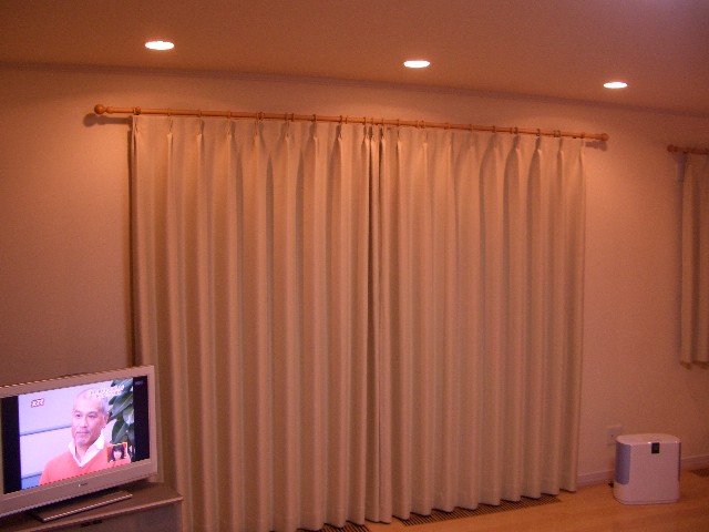 先日、施主支給した照明についての記事を書きましたが、今回は同じく施主支給したカーテンについて記します。カーテンはカミさんが担当したので、今日はカミさんが書きます。 新築住宅のカーテンの相場は大体1坪あたり1万円位するそうです。例えば家が40坪なら40万円といった具合です。我が家の場合、クロスやカーテンにブランドは求めていなかったのもあり、予算の落としどころの一つがカーテンでした。 リビングはこんな感じです。リビング、ダイニング、洋室は同じカーテン、レースにしています。 レールはTOSOのローレット木目です。 まずは食器棚などを買った家具店に行き、レールや生地、取付料までの見積もりを依頼しました。出来上がった見積もりは確かに相場よりは安いものでした。が・・・ 明細にどうしても納得がいかなかったのです。というのも、カーテンとレールには詳しい明細が書かれていたものの、ロールブラインドの部分の詳細がまったくわからない。対応してくれた店員さんも前回担当してくれた人と違うのでよく分からない様子。ここでの見積もりをたたき台に、ネットでも検討するつもりでいた私は少々不満でした。 とりあえず気を取り直し、別のお店へ・・・ところがいざカーテンについて色々調べだすと、その奥の深いこと。フックにAだのBだのがある事すら知らず、当然ですが寸法を決めるにも、まずはレールの位置が決まっていなければ測れないこと(できればレールも自分で取り付けるつもりでいましたので・・)。ロールスクリーンには天井付けや壁付けの2種類がある事。遮光等級や透け具合・・・ただレールを取り付けて、気に入った生地を決めればイイと考えていた私は、あっという間に行き詰ってしまいました。