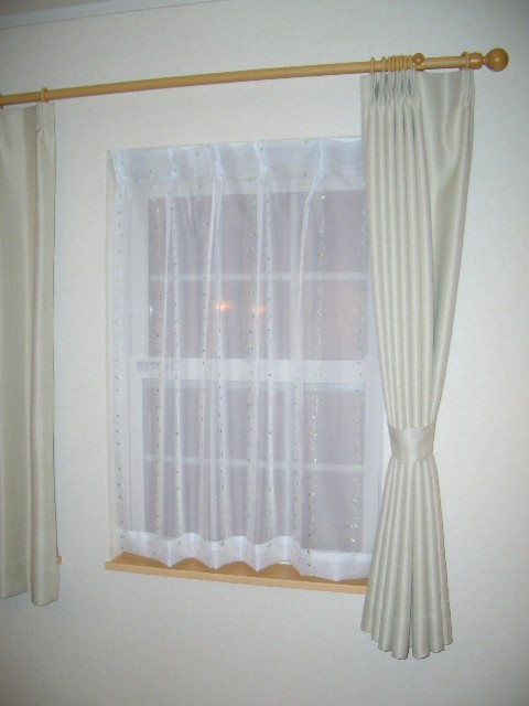 結果としては、ロールスクリーンとカーテンレール、取付までは工務店さんの取引業者さんにお願いすることになり、カーテンの寸法とフックの種類を指定してある用紙を頂き、それを手に家具店に行き生地をオーダーする形に落ち着きました。 カーテンに頭を悩ませている頃、丁度クロスの色決めにこちらの業者さんにお邪魔したので、カーテンがもう訳がわからない!とすがってしまったと言う訳です。 生地を選んだ家具店は最初に行ったお店よりはやや価格の抑えた品揃えでした。 一階の部分と寝室はセミオーダー、子供部屋は既製品と通販のものを丈つめだけお願いしました。 最近は(もしかしたら前から?)レースカーテンのサイズは窓枠内に収めるんですね。 自分で考えていた時はレースも窓の下枠から出るようなイメージを持っていたので、もらったサイズ表を自分のメモと比べたら、長さがかなり違っていました。一階は全てレースはスッキリと枠内に収まっています。 我が家の一階洋室とリビングのあいだには引き戸があります。写真の用に当然引き戸の枠があります。レールの片側がこの部分につっかえ、普通につけようとすると左右のバランスが悪くなってしまう事に、自分で購入しようとしている時には、全く気が付いていませんでした。 こんな感じで端っこ専用のパーツがありました。 縦すべり窓がどちらに開くかで、ロールスクリーンのチェーンが左右どちらに来るかも違います。開閉の邪魔にならないように軸の方にチェーンをつけるのが一般的です。これも自分でネットで選んでいたら適当に決めていたと思います。 ロールスクリーンも全て窓枠内に収めてもらいました。ロールスクリーンは全てニチベイです。 フックの選択もとても重要です。レールを隠すのか、見せるのか。Aフックがレールが見えるタイプ。Bフックがレールを隠すタイプです。レースと厚地が開閉の時に引っかからないようにこういう事も大切だったりします。フックのタイプで丈も変わる事になりますね。これも今まで既製品を適当につけていた私には知らずにいた事の一つです。 2階のカーテンレールは普通のやつです。(TOSOのエリートWです) 結果的にカーテンに関しては施主支給とは言ってもかなりビミョーになってしまいました。強がりを言わせてもらえば、半分はやったもん・・というところでしょうか。 それで気になる総額はというと、ぜ~んぶ合わせて約¥220,000で収まりました。 何から始めればいいのか。家を建てることになってから何度もこの言葉をつぶやいてきましたが、こうしてカーテンも無事に取り付けられました。暖かい季節になったら窓を開けて、レースが風に揺られる様子を眺めるのが待ち遠しいのでした 以上、カミさんからのレポートでした。 最後まで、ご覧頂きありがとうございます。 更新の励みになります できたら、こちらもポチッとお願いします